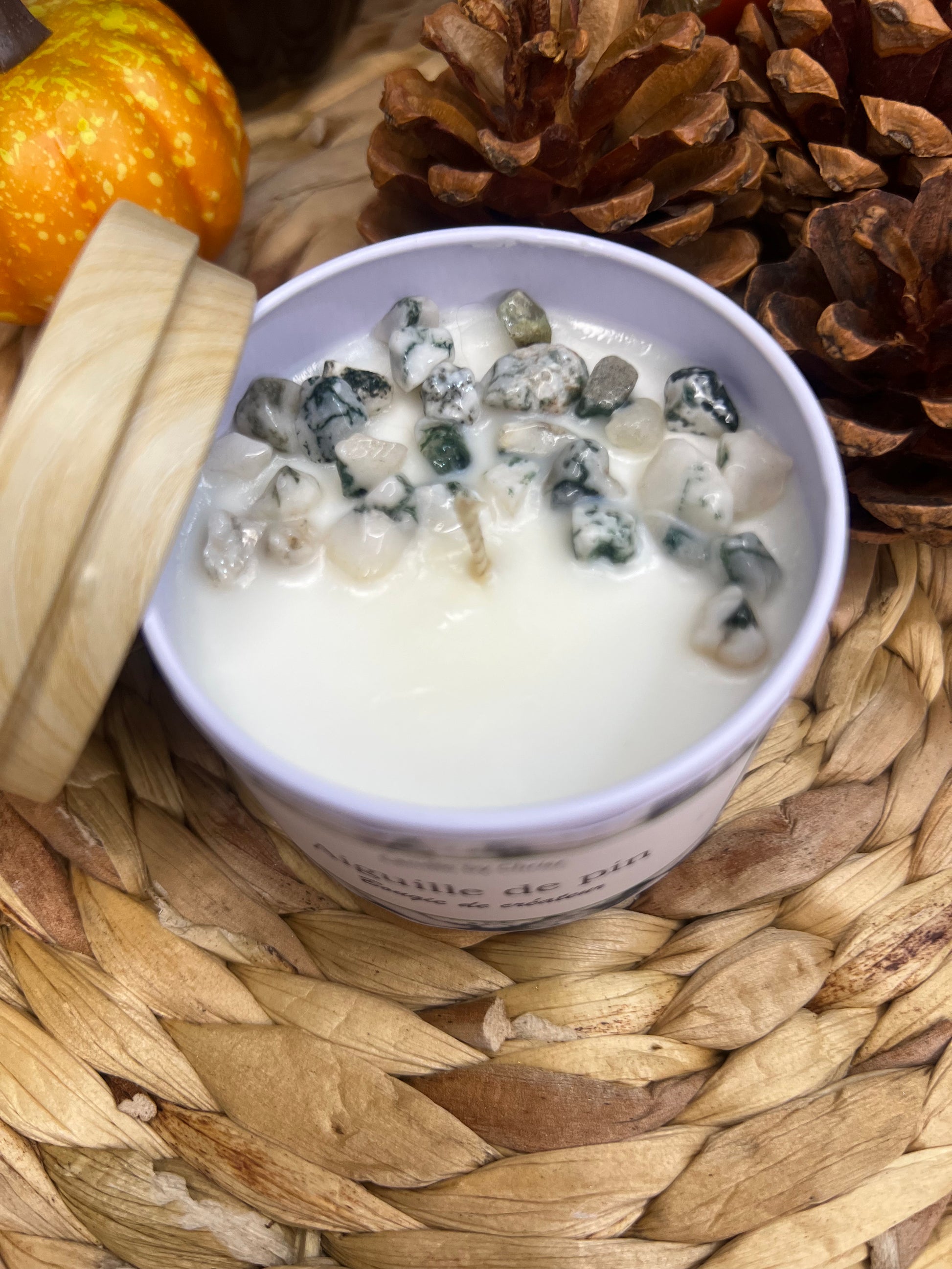 Bougie senteur aiguille de pin- Pierre en agate arbre